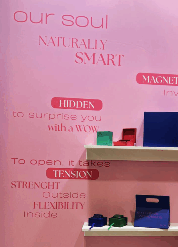 Linee essenziali, incastri intelligenti (magnetici, elastici, senza colla), possibilità di stampa su ogni superficie: ogni struttura è progettata per trasformarsi da packaging a palcoscenico.